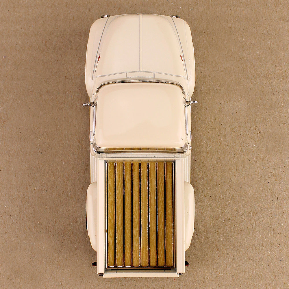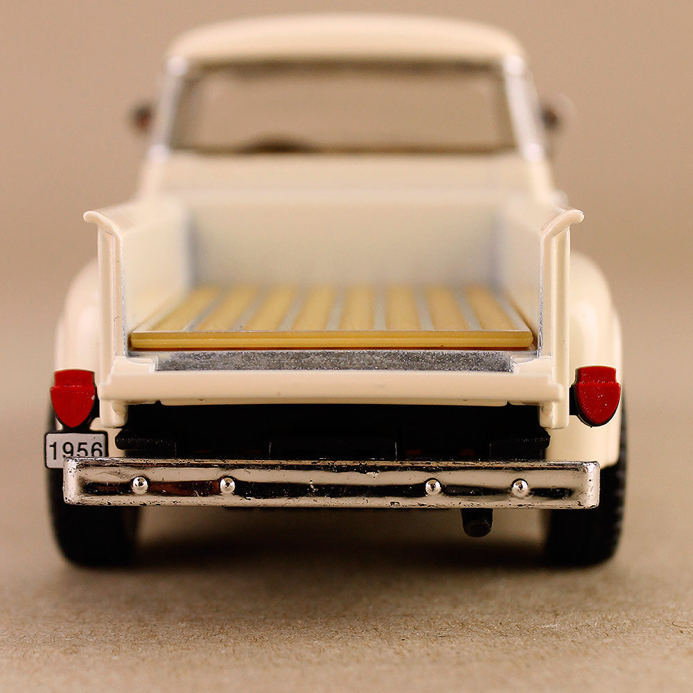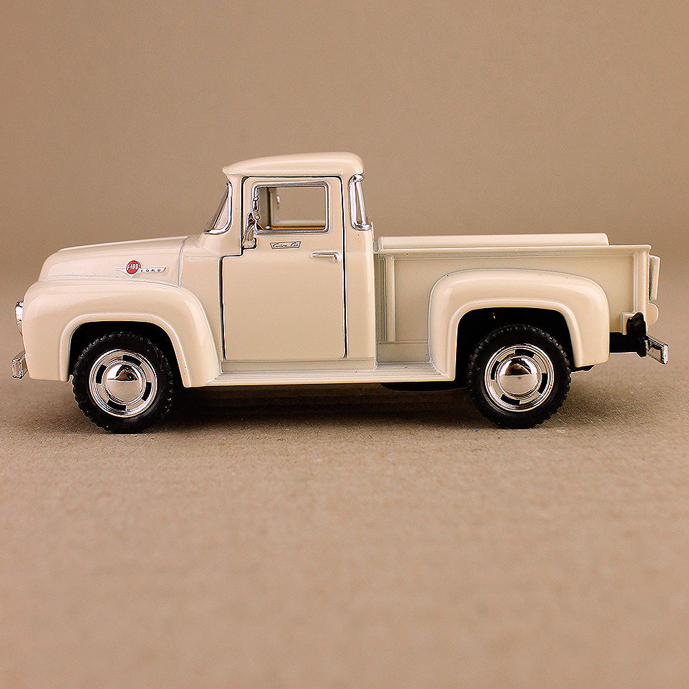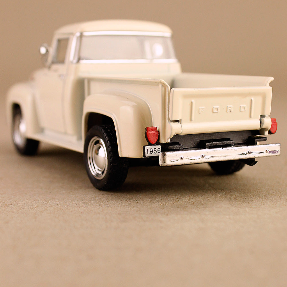 This 1956 Ford F-100 is the ultimate pick-up (ute) in 1:38 scale, die-cast metal. The model features 2 opening doors, side mirrors and windscreen wipers, badges and decals, an opening rear tray and excellent detail inside and out. Realistic looking wood floor inside the tray. Plus a bonus pull-back action. A particularly fabulous representation all within a tidy compact 12.5cm size. Model is new but does not come boxed.