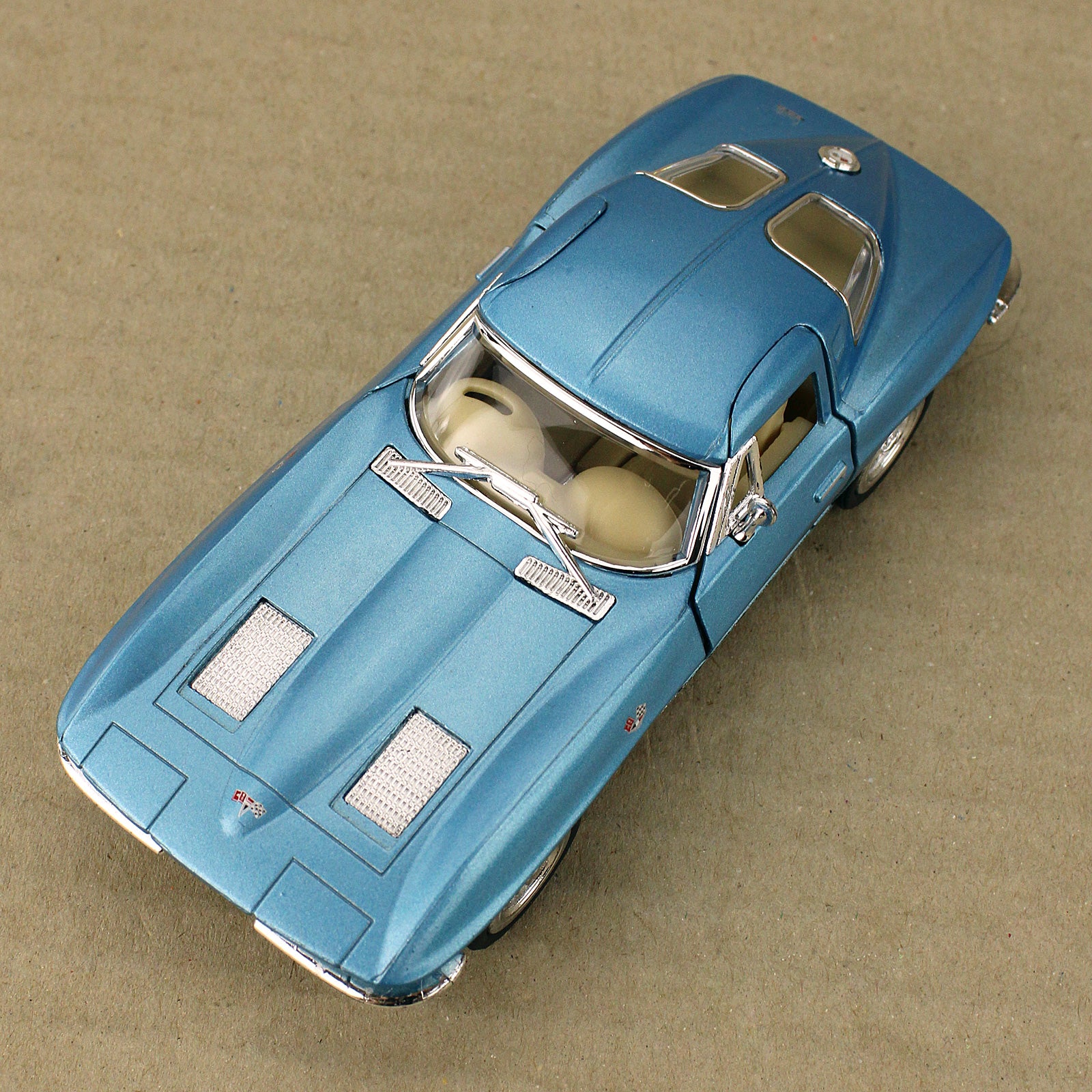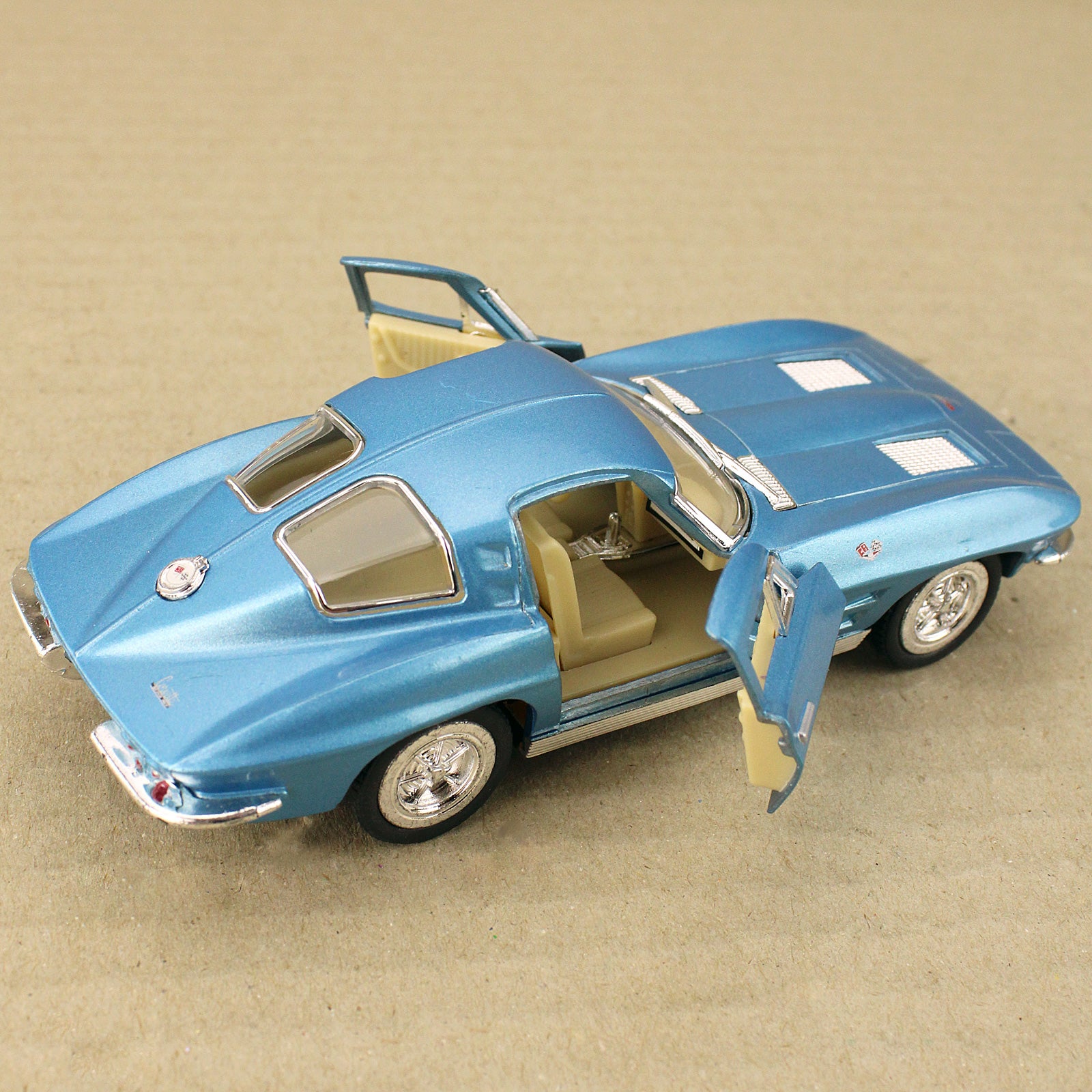 The 1963 Corvette Stingray defined an era that is still the pinnacle of cool. This fully licensed die-cast model car from Kinsmart packs impressive detail and miniature decals into its 1:36 scale. It measures 13cm long, has opening doors with a detailed plastic interior, and a pull-back action.