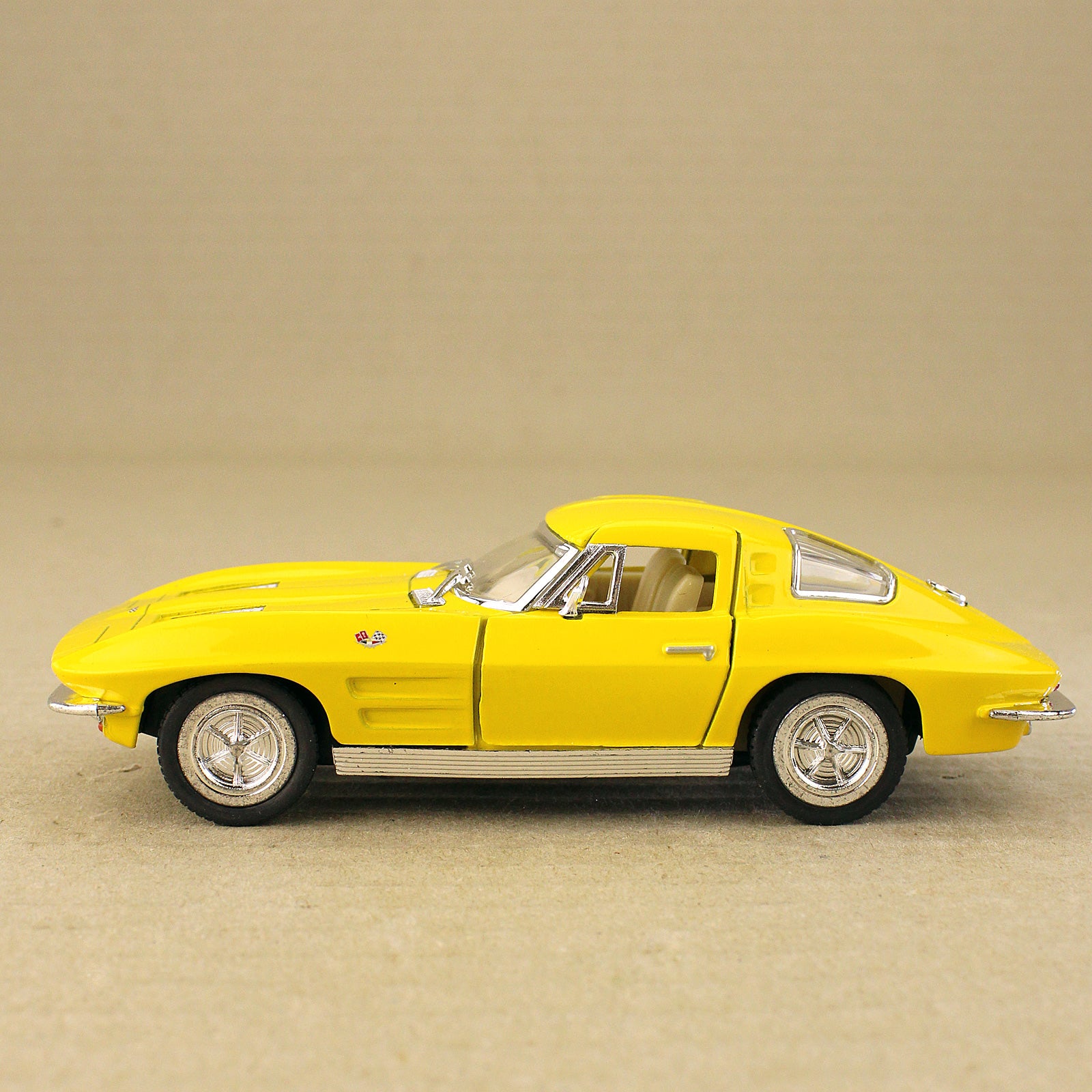 The 1963 Corvette Stingray defined an era that is still the pinnacle of cool. This fully licensed die-cast model car from Kinsmart packs impressive detail and miniature decals into its 1:36 scale. It measures 13cm long, has opening doors with a detailed plastic interior, and a pull-back action.
